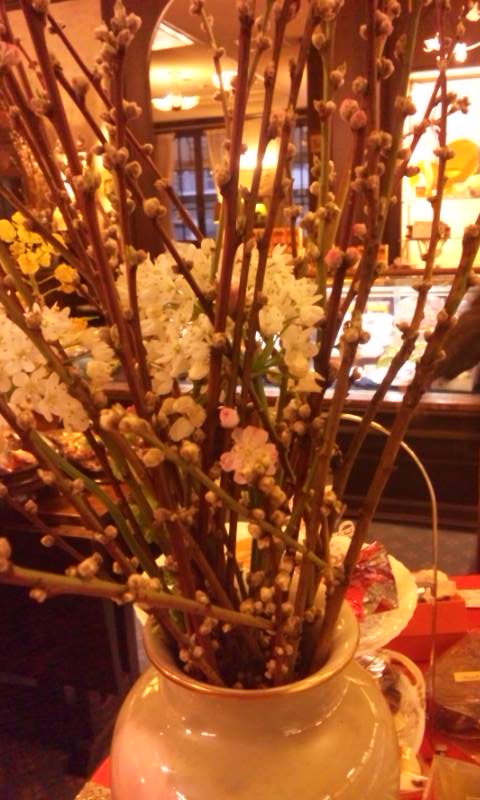 今日はびっくり5cmの積雪、まだまだ春は遠いのかな。それでも広島市内のフランス菓子店”ポワブリエール”で桃がほころび始めました。2月3日に剪定した枝を持ち込んだもので3日のひな祭りに間に合いそうです。